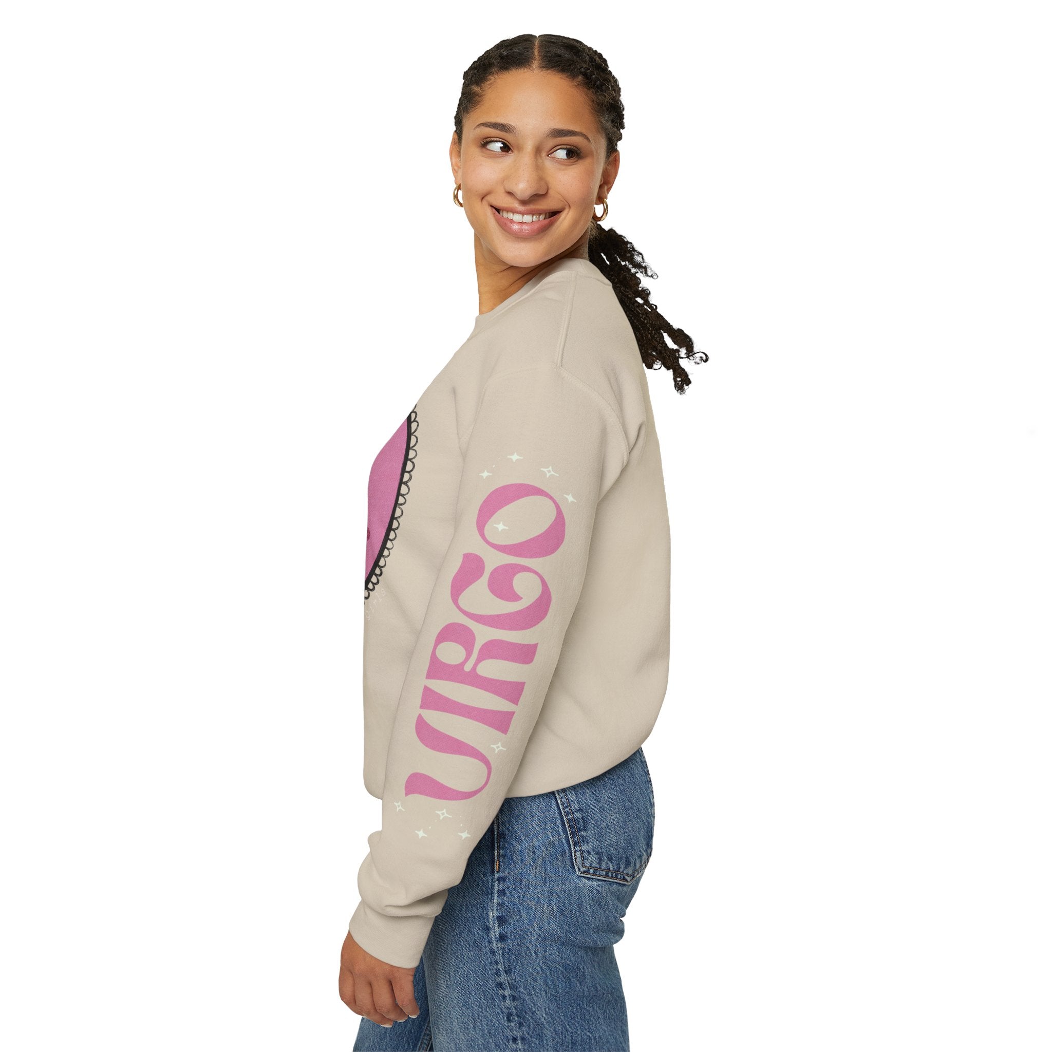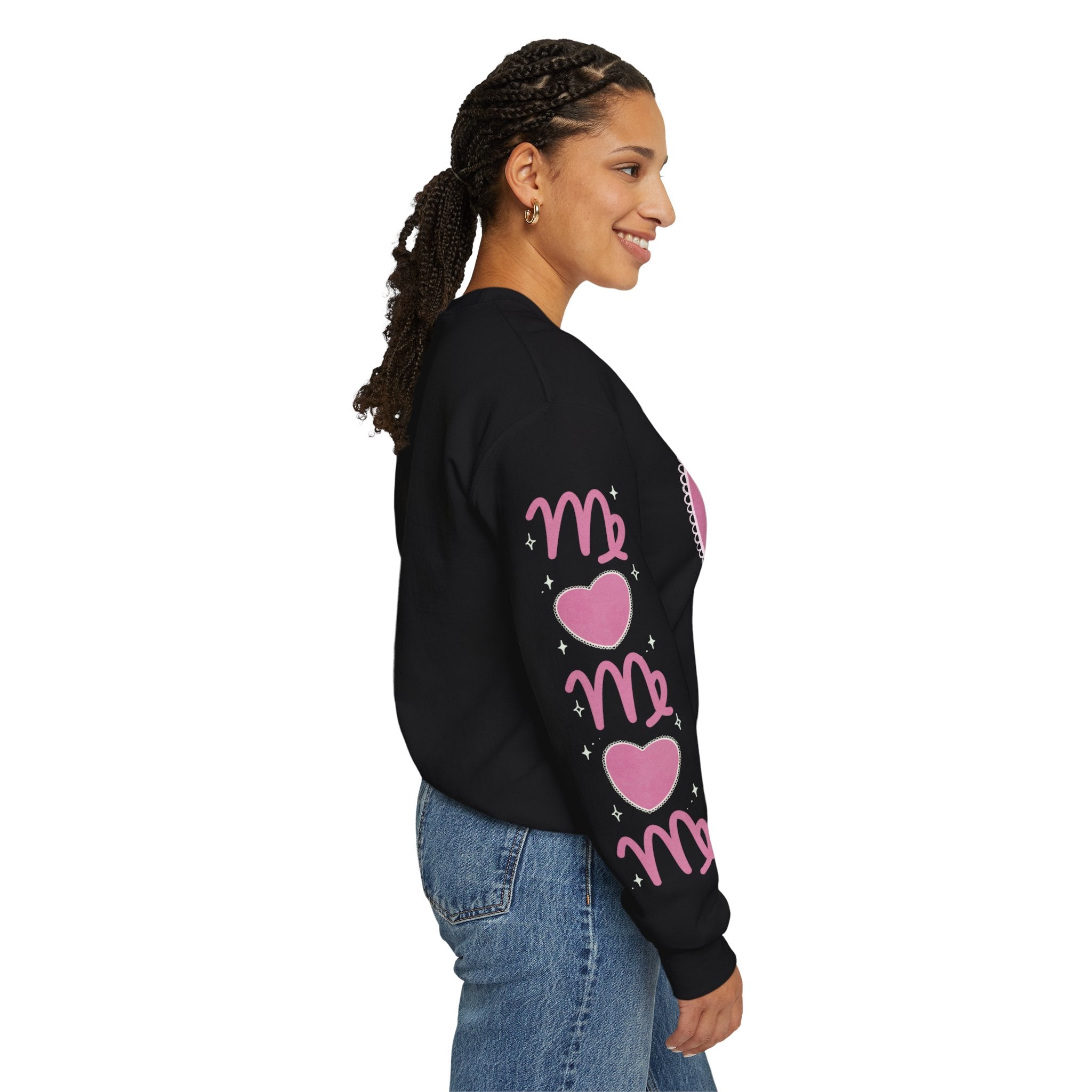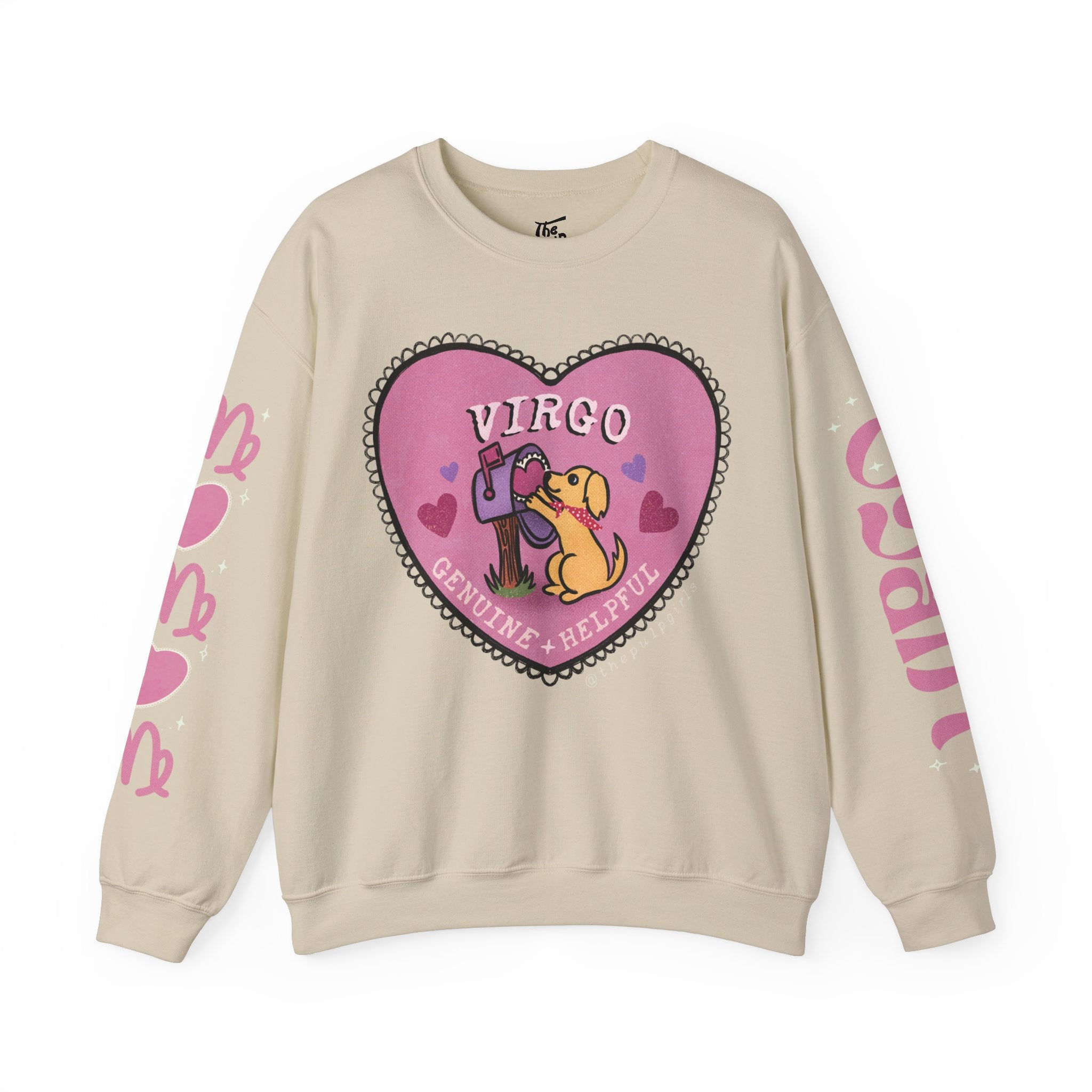 Virgo darlings! Fall in ~love~ with our love themed dog astrology merch. Featuring the sign name along one sleeve, and your sign & some hearts along the other sleeve.