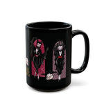 Enjoy your favorite tasty beverage in our darling black mug featuring retro style, pinup bat babes in various poses.