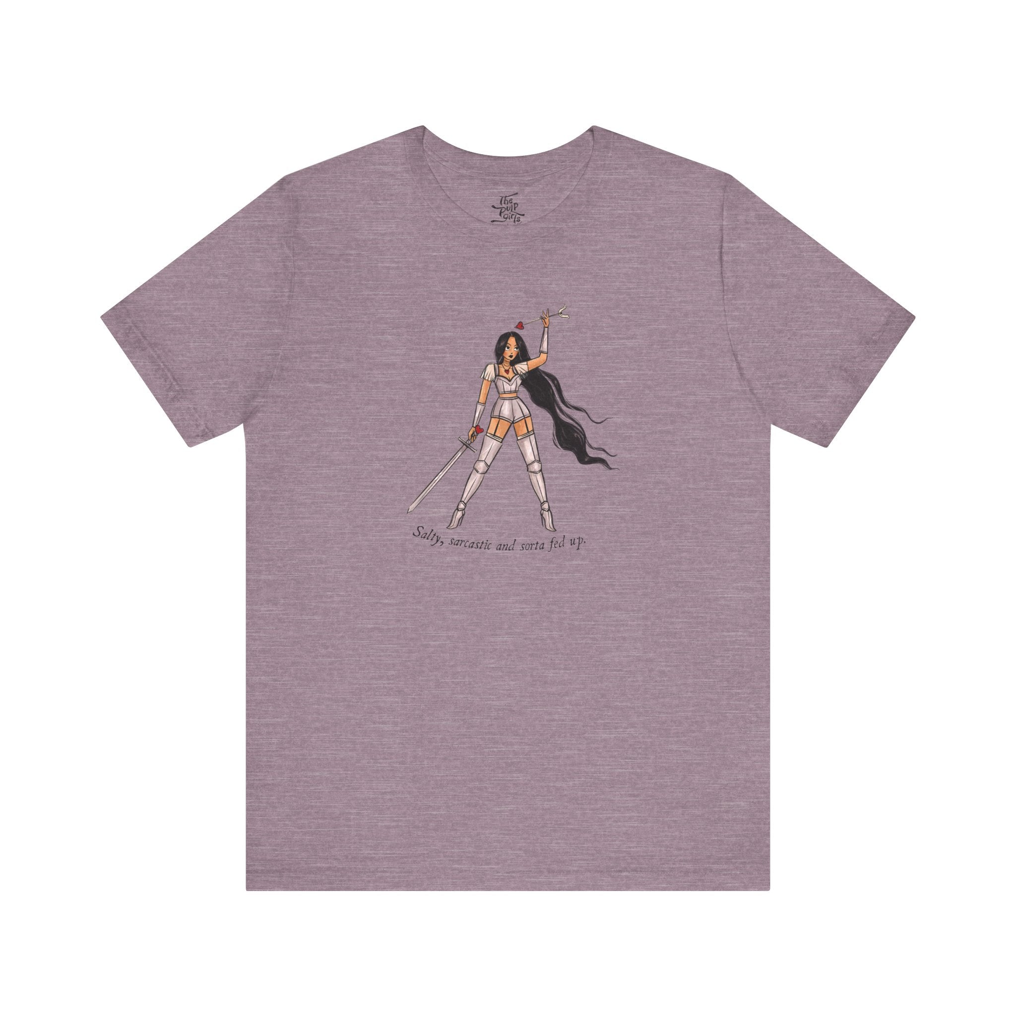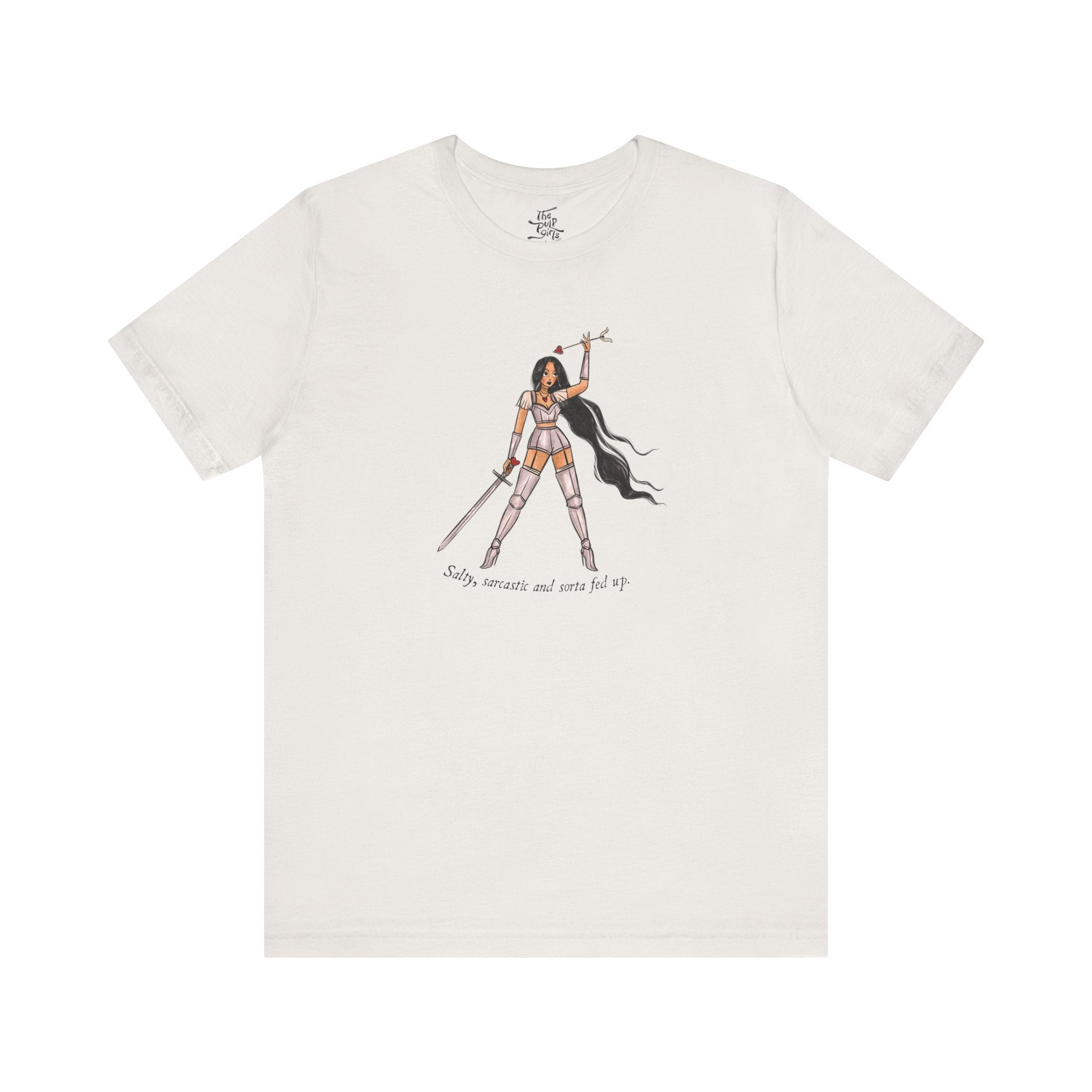 Please refer to the size chart for measurements. Consider how you want your shirt to fit (i.e. more snugly, loosely, etc). 100% ring spun cotton for a soft, comfy fit.