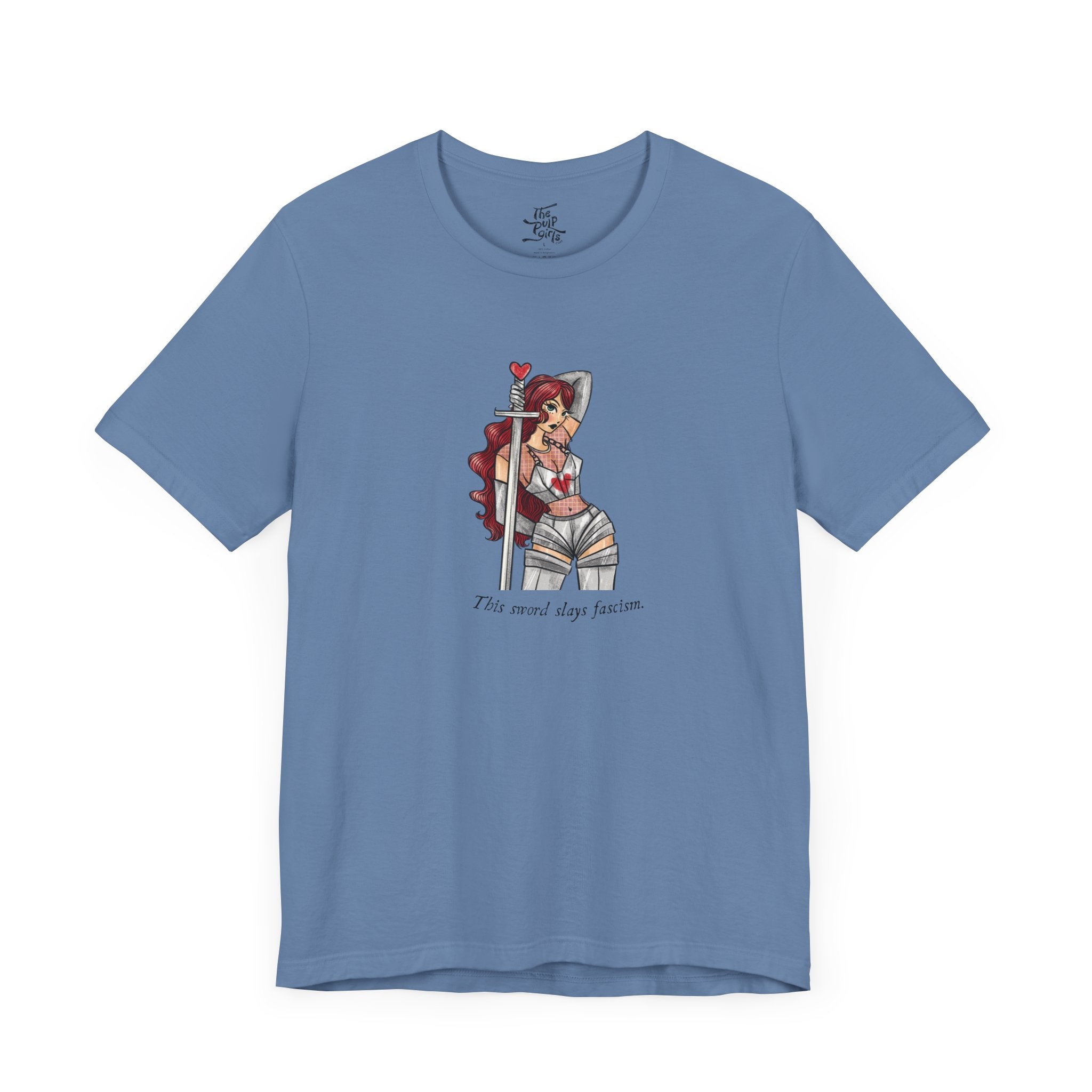 Please refer to the size chart for measurements. Consider how you want your shirt to fit (i.e. more snugly, loosely, etc). 100% ring spun cotton for a soft, comfy fit.