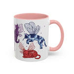 Choose from 11oz or 15oz size, and four different colorways. Mug is ceramic, dishwasher and microwave safe! We recommend handwashing, however, for longevity!