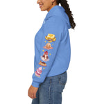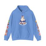 Do you love cats? What about desserts? Maybe even cats AND desserts?? Then this is for sure the comfy, cozy hooded sweatshirt for you! Featuring a scrumptious blueberry cheesecake kitty on the front and a bunch of darling dessert cats along the sleeves, this might be the sweetest shirt you can ever wear!